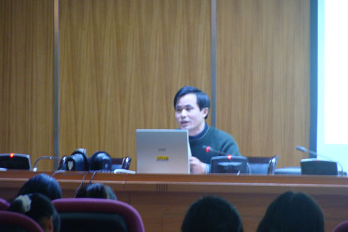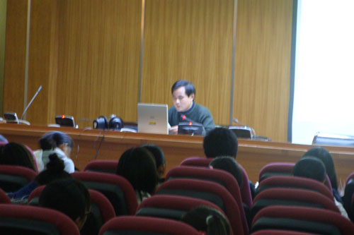 第三讲由公共基础部高祥德老师主讲,题目是《中国民俗文化之中国人起源说》,他首先简要地讲述了民俗和民俗学的产生、发展和分类及功能,重点是讲解民俗学中口承语言民俗重要问题――中国人起源说。从神话传说、考古发掘到原始宗教最后谈到混血的龙:引经据典,勾勒出中国文化产生及其最初发展的基本轮廓,使当代大学生真实地感受到了远古中国文化的魅力,也引发了当代大学生深入思考“中国人从那里来”千古话题,激发了当代大学生热爱中华民族,探求中国灿烂文化真谛的激情。