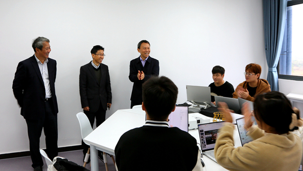 仪式结束后,参加仪式的领导和嘉宾一同参观了创新创业中心,观摩了实践教学活动。