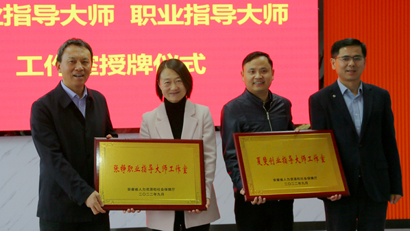 活动现场,校领导和市人社局负责同志向省、市级创业指导、职业指导大师工作室授牌;安庆市就业中心、安庆职院、正保育才三方举行创业大学(双创学院)合作签约;安徽鑫铭新材料科技有限公司作创业主题报告;省市级创业、职业指导大师作成果评鉴交流。