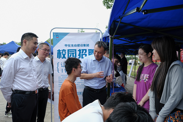 童宏葵首先来到安庆中安龙山建设集团有限公司宣讲台前,仔细询问该公司用工需求情况,当得知该公司与WilliamHill官网长期开展专业共建和人才培养,目前还有10余名WilliamHill官网历届毕业生在该公司工作时,非常高兴,对前来应聘的实习生说:目前建筑行业高质量的就业岗位紧缺,希望同学们把握机会,选择优质企业发展。