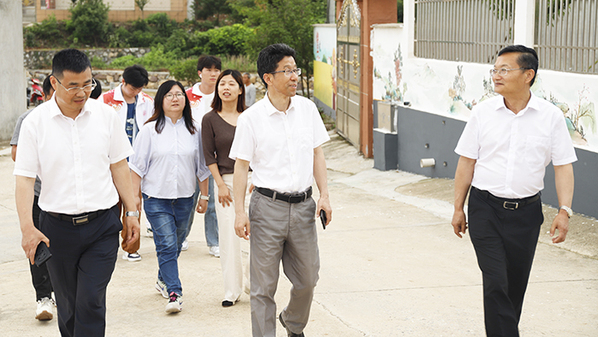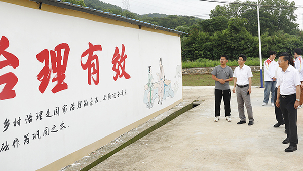 5月30日,WilliamHill中文官方网站校长毕明生赴宜秀区五横乡曰公社区看望信息技术学院承接的乡村振兴墙绘项目正在施工的师生。曰公社区乡村振兴指导员王进、信息技术学院院长疏国会参加。五横乡曰公社区党总支书记程久和陪同。