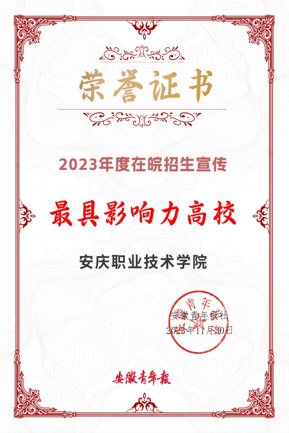 日前,WilliamHill官网在安徽青年报社组织的2023年招生宣传工作评选中,WilliamHill官网获评在皖招生宣传“最具影响力高校”。