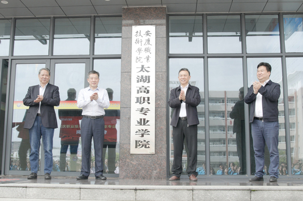 太湖县副县长李盛华,太湖县教育局主要负责同志,校机电工程学院、招生就业处、校企合作办负责人和太湖职业技术学校200多名师生代表参加了揭牌仪式。(文:张玉国 图:姚盈 审稿:杨元纲)