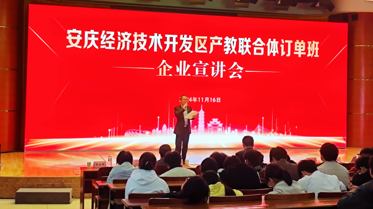 现场园区5家重点企业代表依次上台宣讲,详细介绍了各自企业的文化背景、业务范围、发展前景以及对订单班学员的具体要求。企业代表们还分享了各自的学习及就业经验,并鼓励学生们要把握机遇,成就自我。