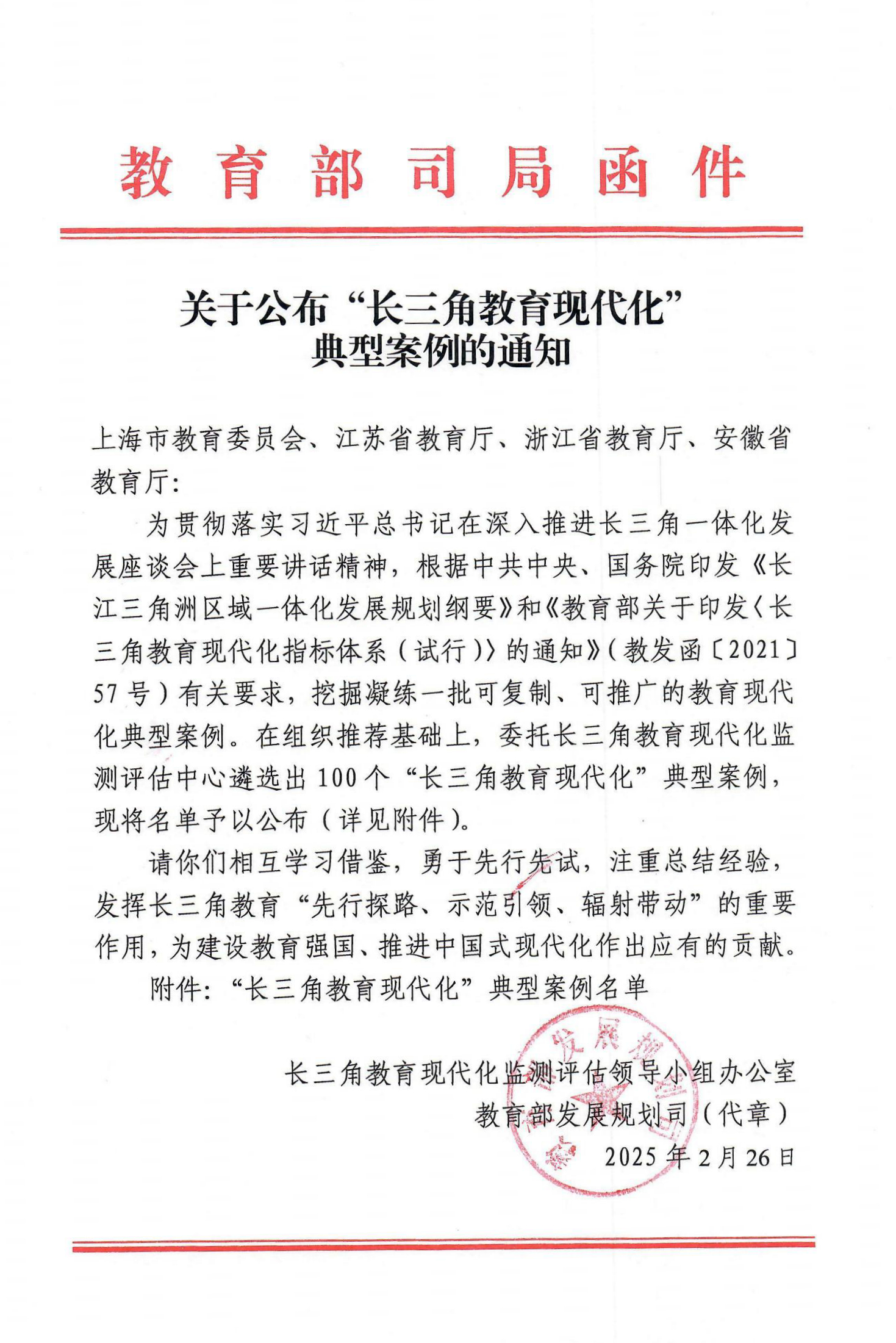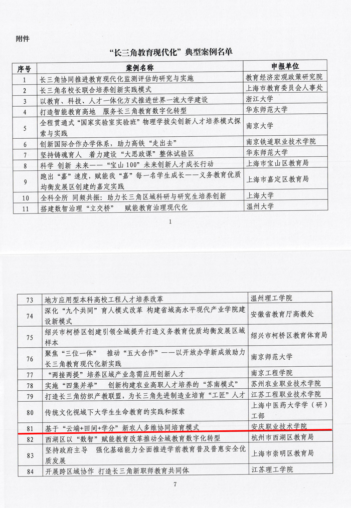 近日,教育部发展规划司公布“长三角教育现代化”100个典型案例名单。WilliamHill官网《基于“云端+田间+学分”新农人多维协同培育模式》成功入选。