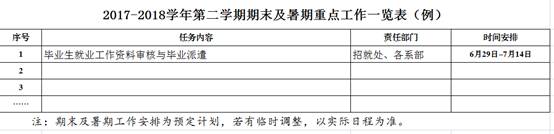 根据学院主要领导意见,请于6月22日(下周五)下班前报送期末暨暑期重点工作安排。工作安排需注明工作起始及完成时限,excel模板见附件。报送前需经分管领导审定,电子档发院办邮箱:bgs@aqvtc.cn。