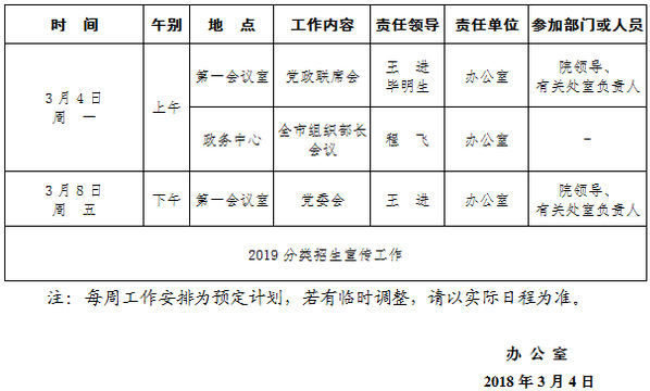 2018-2019学年第二学期第3周(3.4-3.10)工作安排