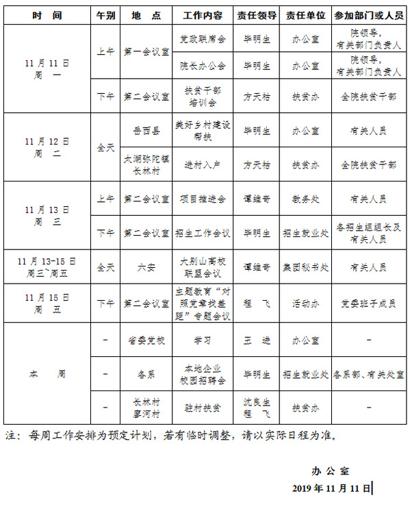 2019-2020学年第一学期第12周(11.11-11.17)工作安排