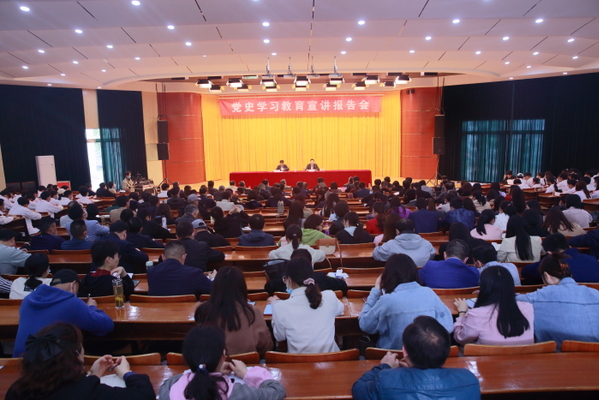 4月28日下午,WilliamHill官网在图文信息中心一楼报告厅举办党史学习教育宣讲报告会。校党委书记王进作主题宣讲。党委副书记、校长毕明生主持报告会。党委委员谭维奇、李克让、沈良生、程飞和学校全体党员参加学习。