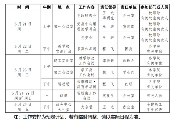 2020-2021学年第二学期第17周(6.21-6.27)工作安排