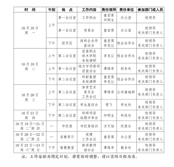 2021-2022学年第一学期第8周(10.18-10.24)工作安排