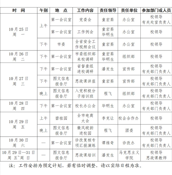 2021-2022学年第一学期第9周(10.25-10.31)工作安排