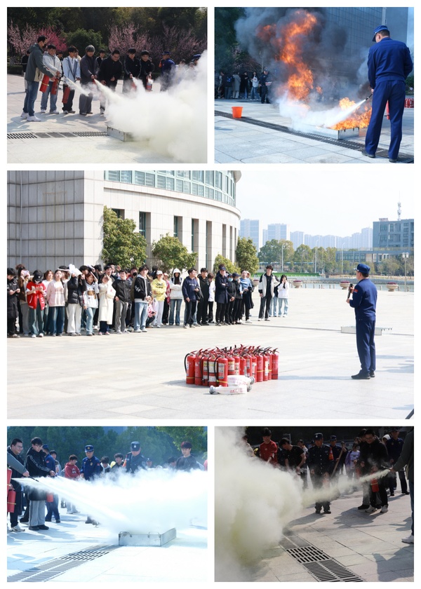 在灭火器材实训操作环节,消防员现场演示了灭火器的正确使用方法,并邀请师生们亲自操作练习。通过实际操作,大家掌握了灭火器的使用技巧,增强了应对初期火灾的信心和能力。