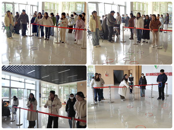 与此同时,趣味套圈游戏正在火热进行中。女教职工们手持套圈,在指定线外,瞄准心仪的奖品轻轻一掷。套圈在空中划出优美的弧线,或稳稳落入奖品区,或擦肩而过,现场欢呼声、加油声此起彼伏,气氛热烈而欢快。无论是精准命中后的喜悦,还是差之毫厘的惋惜,都成为节日里难忘的瞬间。
