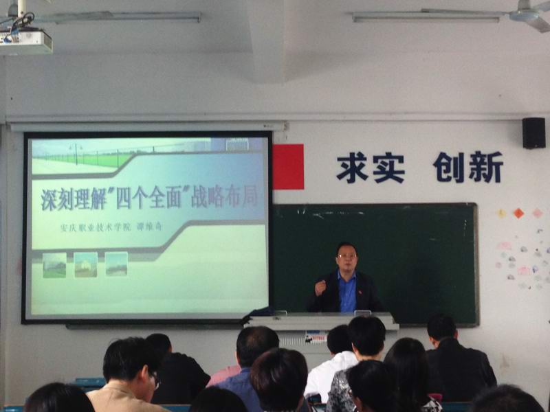 谭维奇副院长以《深刻理解“四个全面”战略布局》为主题,从“四个全面”战略布局提出的时代背景、彰显的时代意义、蕴含的时代内涵、赋予的时代要求四个方面,全面而详细的论述了“全面建成小康社会、全面深化改革、全面依法治国、全面从严治党是以习近平同志为核心的党中央治国理政战略思想的重要内容,为推动改革开放和社会主义现代化建设迈上新台阶提供了强有力的保障。