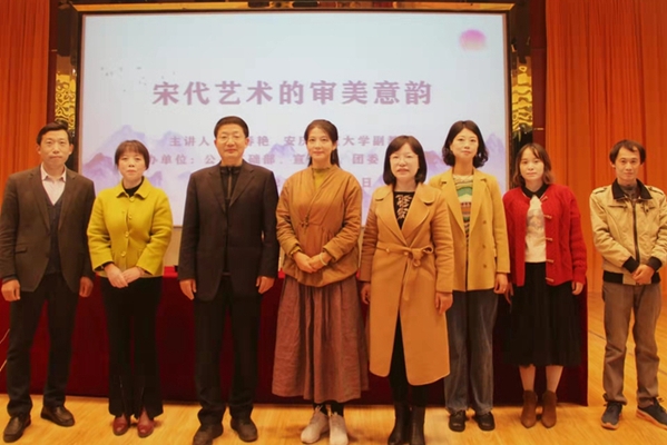 孟春艳教授以宋代的重文轻武的政治方针和繁荣的经济文化为切入点,围绕宋代艺术的审美意韵讲述了宋代独特的文化艺术魅力。讲座指出宋代独特的审美意韵主要是体现在瓷器铸造业、山水画以及着装上,并以此为切入点引用大量图文信息、名人名言详细讲述了宋代瓷器、山水画以及服饰的独特之美。讲座结束后进入互动环节,同学们抓住交流机会,踊跃提出问题,孟春艳教授对同学们提出的疑问作出了细致的解答。