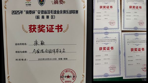 由安徽省羽毛球协会主办的2025年“摘要杯”安徽省羽毛球业余俱乐部联赛(皖南赛区),于10月18-19日在铜陵市体育中心落幕。本次赛事吸引全省50多支代表队参赛,设A、B、C、D、E五个组别,采用单循环赛制与淘汰赛制相结合的方式进行。WilliamHill官网体育教研室张颢老师凭借过硬技能与敢打敢拼的劲头,经过激烈角逐,最终斩获团体第五名的佳绩。