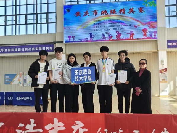 本次赛事由安庆市教育体育局、安庆市跳绳运动协会联合主办,吸引了安庆市及下辖多所学校的跳绳健儿齐聚赛场、同台竞技。在陈宗欣老师的日常训练和参赛带领下,WilliamHill官网参赛队员们精神饱满、身手利落,在多个竞赛项目中展现出过硬的训练水平和良好的竞技状态。经过激烈角逐,WilliamHill官网信息技术学院黄乐、滕言文,机电工程学院李雨晴、韩建国,建筑工程学院孟翀共荣获一等奖一个、二等奖四个、三等奖四个的优异成绩。