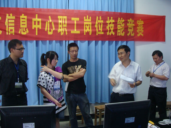 6月8日下午,图文信息中心首届职工岗位技能竞赛计算机管理员组比赛在中心四楼举行,余祖文副院长亲临现场并作了重要讲话。余院长充分肯定了举办岗位技能竞赛的意义,要求图文信息中心全体职工立足岗位练技术,着眼服务长能力,努力将竞赛成果巩固到日常岗位工作之中。当天,计算机实验实训中心4名管理员参加比赛,他们在90分钟内娴熟地完成了计算机硬件组装、软件安装、网络搭建与维护等操作任务。比赛结束前,评委负责人对参赛选手的表现进行了细致的点评,从操作规范、技术要素等方面提出明确要求并做了现场演示。参赛职工表示,参加岗位技能竞赛收获很大,对自己岗位胜任力提升有帮助。
