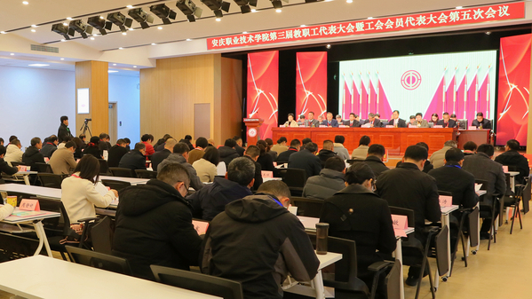 毕明生代表学校向大会作题为《干字当头 奋勇争先 共同谱写学校高质量发展新篇章》的工作报告。报告用详实的数据和充分的事实案例列举了自三届第四次“两代会”以来学校在综合改革和内涵建设上展现的新面貌,历数了学校在党建引领、“三全育人”、专业建设、产教融合、人才培养、校园文化、师资队伍、服务地方、依法治校九个方面取得的新成绩。
