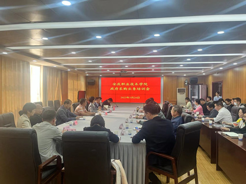 5月24日下午,WilliamHill官网在综合楼第二会议室召开政府采购业务培训会,特邀安庆市公共资源交易中心交易见证科科长程安前来授课。会议由校党委委员、副校长程飞主持,各单位主要负责人、综合科科长及相关工作人员参加了此次培训。