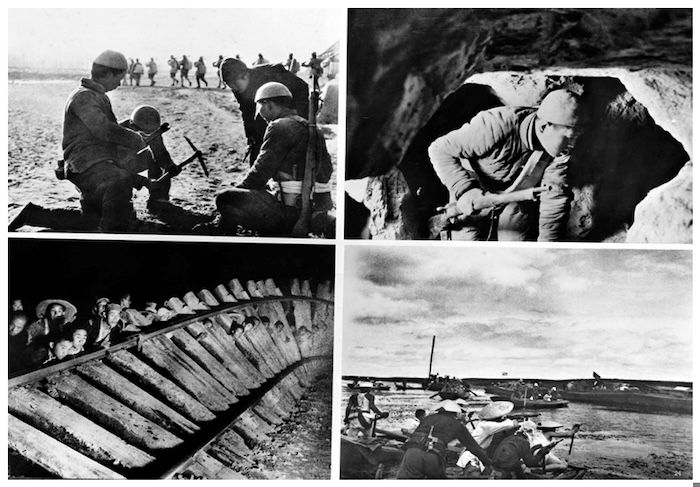 (上图左:地雷战;上图右:地道战;下图左:破袭战;下图右:水上游击战。 新华社发)