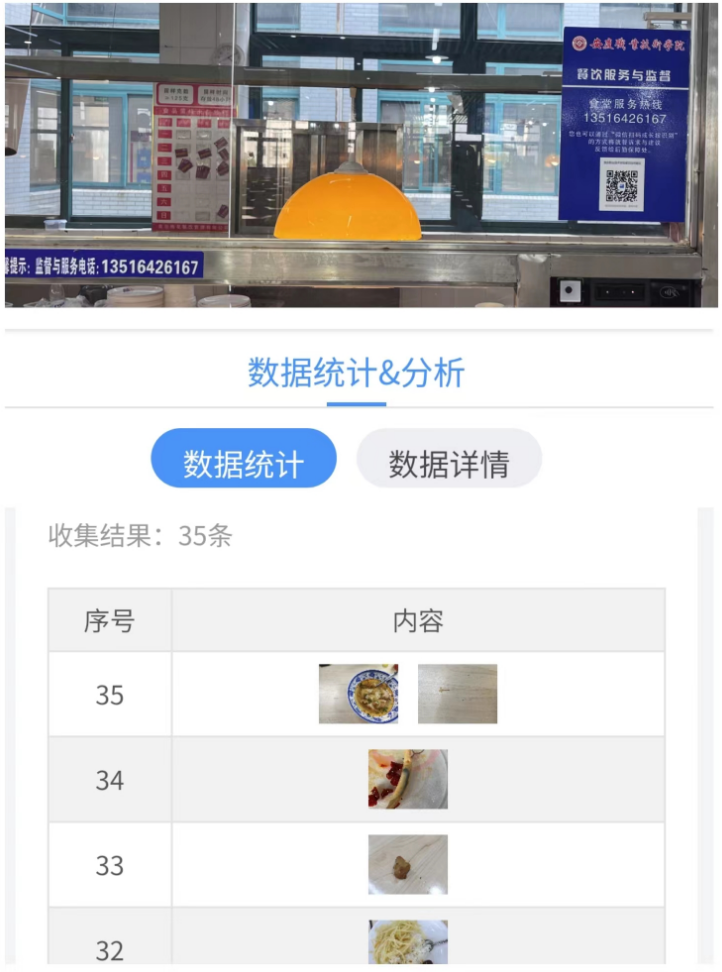 消费的师生们如果在食堂就餐有任何意见和建议,可以扫描食堂窗口的二维码,填写投诉详情,后勤保障处每天安排专人第一时间联系师生,了解师生诉求,并妥善处理。自23年元月开通“码”上投诉渠道以来,食堂累计处理投诉建议35项,且都得到了师生的认可。