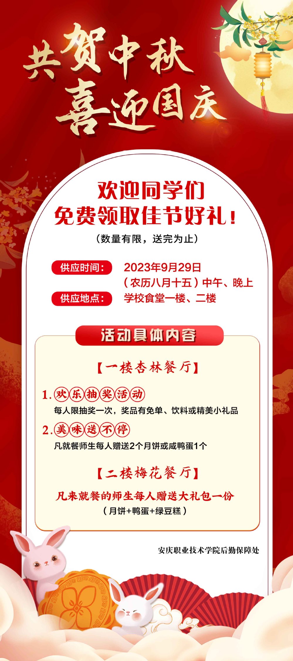 共贺中秋 喜迎国庆 欢迎同学们免费领取佳节好礼!