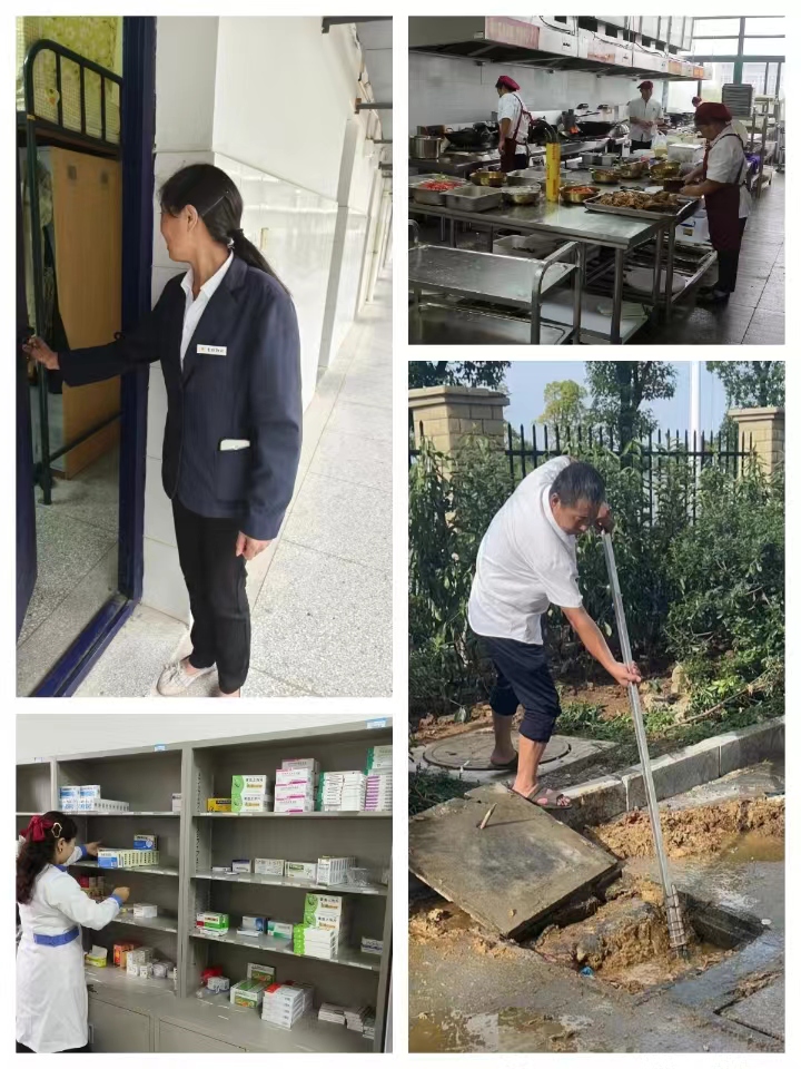 楼管员的日夜值守和巡楼是常态;食堂、超市节假日不打烊满足大家生活需求;后勤人披星戴月地维保抢修只为公用设备全年不断线;校医院24小时值班制为师生员工生命健康保驾护航。