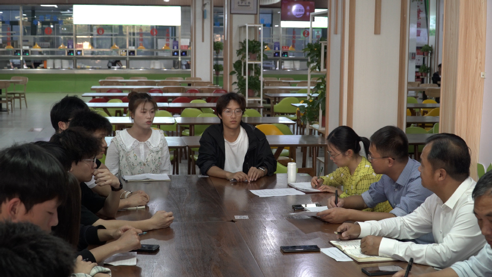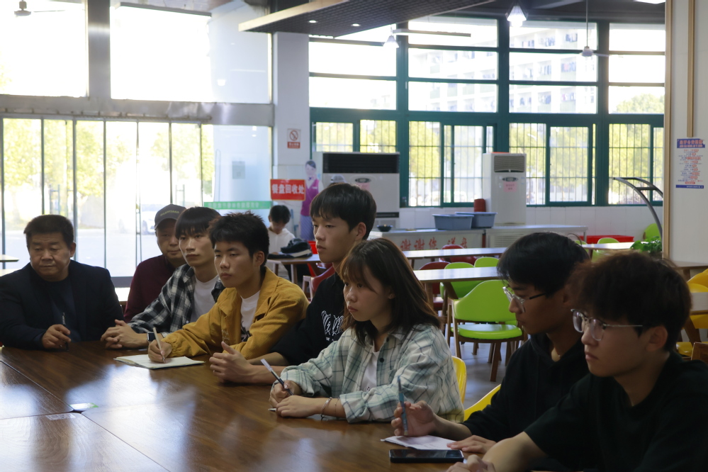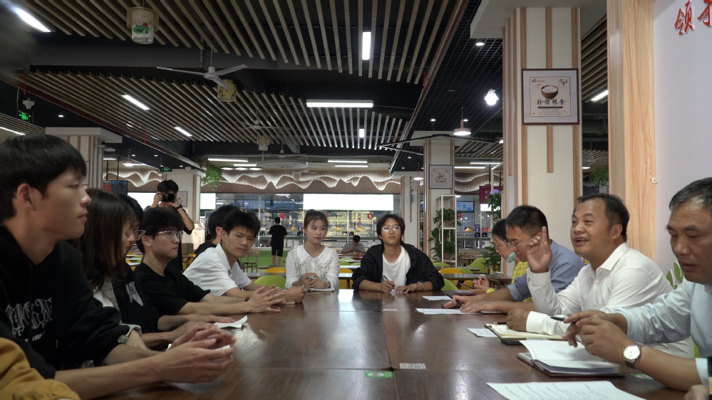 随后,程飞一行来到食堂“面对面”处开展座谈交流。通过一下午的走访查看,同学们感触颇多,很快打开了话匣子。22电子商务1班的许守路表示现在邮政快递垃圾较多,希望快递点处能增加几个垃圾箱;21新能源3班黄硕希望能延迟校园北门的开放时间,方便下午四节课的同学出门办事情;22计算机应用技术8班叶文成,反应学生宿舍卫生间积水较多,容易滑倒;22婴幼儿托育服务与管理5班刘雪婷反映厕所冲水的龙头容易滴水……程飞认真倾听,并一一耐心解答。对于物业管理需要整改的问题,他要求尽快办理;对于属于其他部门的业务工作,他也详细记录,予以转告解决。