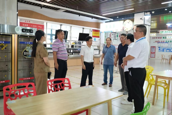 检查期间,毕明生一行来到信园、3号教学楼、室内体育馆、1号宿舍楼施工现场,听取了项目负责人的情况汇报,详细了解工程建设情况。现场检查学生食堂、商业网点等广大师生生活等重要场所,深入了解了食品安全情况,细致询问了新学期货物供应及质量保障。