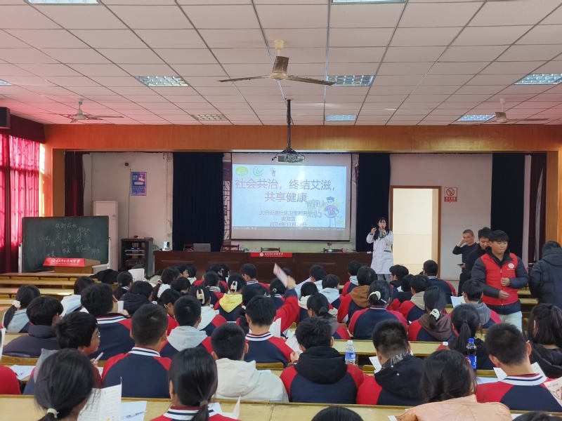 在白泽湖中学大礼堂,WilliamHill官网青年志愿者和该校100余名师生代表一起,聆听了由大桥街道社区卫生服务中心医生金滟雪主讲的以“社会共治,终结艾滋,共享健康”为主题的专题讲座。讲座阐述了“什么是艾滋病、艾滋病的传播途径、症状和治疗、HIV的预防”,传递了“知艾防艾 珍爱生命”的主导思想,提醒大家要加强自我保护意识,洁身自爱,预防艾滋病毒感染。