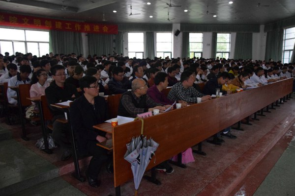 为贯彻落实学院创建省级文明单位活动精神,进一步提升系部文明层次和师生文明素养,加强学生思想道德教育,树立文明新风。机电工程系于4月20日下午,在图文信息楼报告厅举行了文明创建动员会。系分管学生工作负责同志主持会议,系负责人刘磊出席会议并讲话,系分管教学工作负责同志、各科任课老师、全体辅导员班主任以及14、15级全体学生参加了此次动员会。