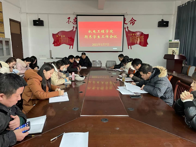 1月7日下午,机电工程学院在1号楼教学楼208会议室召开征兵工作推进会暨期末学生工作会议,会议由机电工程学院院长刘磊主持,全体专职和兼职辅导员参加此次会议。