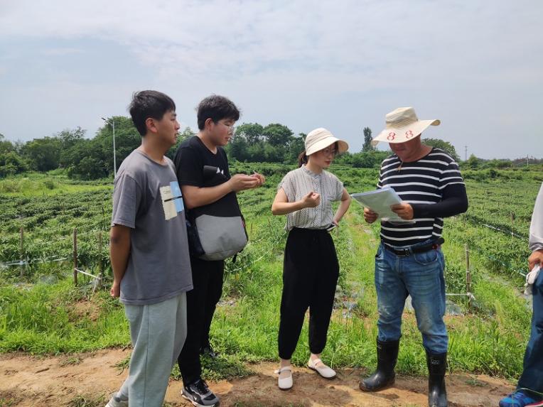 最后负责人带领我们参观了常用农业机械以及农机使用者的工作现场。团队成员积极反馈自身的实践成果,并对实践过程中出现的问题进行提问。深入第一现场,不管是管理者,个体种植户还是农机操作者都非常配合填写调查问卷并切实与我们沟通农机使用的感受以及带来的极大便利。农户们谈到10年前大家的劳作全部都是人工完成,面朝黄土背朝天,不仅费时费力,产量也相对低。如今在国家的大力扶持下,能够使用农机是我们这一代农民的幸福。与此同时,同学们还就事先准备好的农机知识以及维修保养知识对农户们进行宣传讲解。