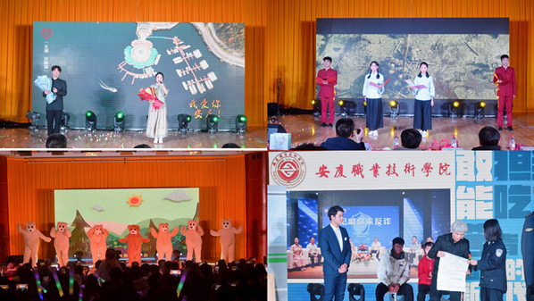 晚会在朝气蓬勃的《少年中国说》歌曲声中拉开帷幕,热血激昂的歌声配和台下青年学子铿锵有力的呐喊,瞬间点燃全场,将整场气氛带动了起来,民乐器《西厢寻他》、小品《反诈银行》、《学校里的那些事》、《超级辩论赛》、拉丁《恰恰恰》、歌曲《只对你有感觉》、相声《大学生活》、舞蹈串烧《小熊舞》与《科目三》,取材新颖,匠心独具,将机电学子的青春朝气、多才多艺诠释得淋漓尽致;爱国是青春的底色,诗歌朗诵《觉醒年代》,引导广大青年学子从经典作品中感悟革命先辈坚定的理想信念、深厚的爱国情怀,激发奋进的力量,将现场气氛推向高潮,一曲独具黄梅戏特色的《女驸马》,让同学们深入地感受到了原汁原味的地方戏曲艺术和黄梅戏表演的魅力,迎来了全体师生的阵阵掌声,为2024元旦迎新晚会画上了圆满的句号。