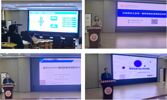 建筑工程学院副院长张赛在讲解“有效课堂整体设计要点”时,解析了教学目标设定、内容组织以及多样化教学方法的灵活应用。电子商务专业建设负责人夏金弟通过具体的教学案例,来展示如何进行有效课堂的整体设计,强调 “边学边做”的实践性教学理念。