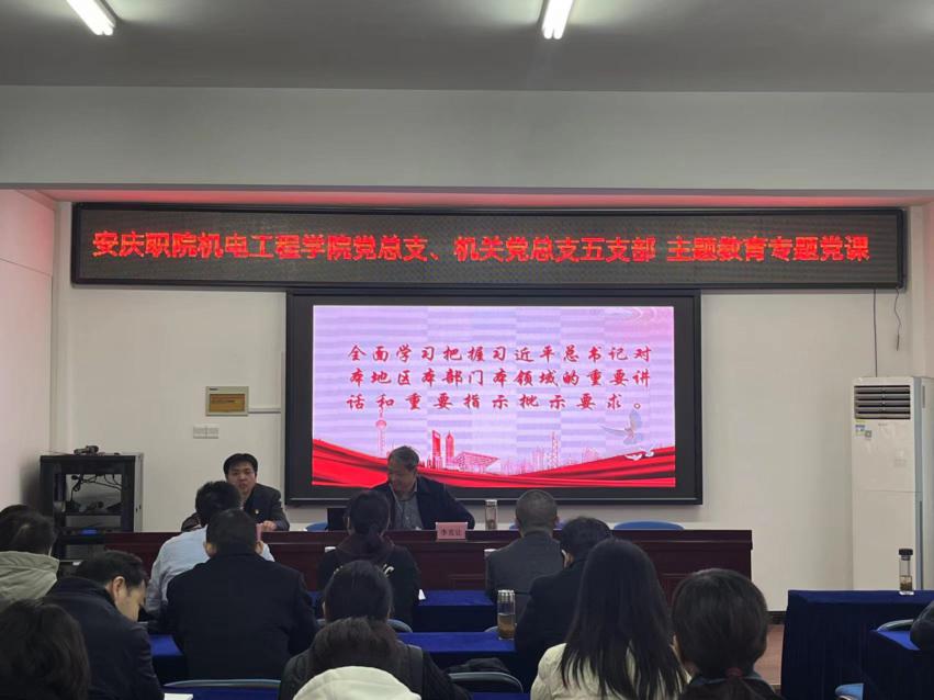 11月25日上午,校党委副书记李克让以普通党员身份给机电学院党总支和机关党总支第五支部党员同志作题为《深刻感悟习近平新时代中国特色社会主义思想的重大理论创新》的主题教育专题党课。机电学院党总支书记、院长刘磊主持会议。机电学院党总支、机关党总支第五支部党员和入党积极分子40余名同志参会。