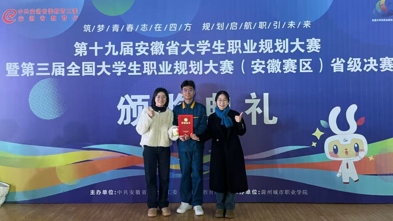 本次大赛由安徽省教育厅主办,以“筑梦青春志在四方,规划启航职引未来”为主题,于2025年10月正式启动,采用“校赛—省级半决赛—省级决赛”三级赛制,旨在以赛促学、以赛促教、以赛促就,搭建强化生涯教育、促进人才供需对接的优质平台。 自大赛启动以来,学校高度重视,周密部署,迅速启动校赛选拔工作,全校成长赛道报名人数达5360人,就业赛道报名人数1216人,参赛规模创历史新高。为提升学子参赛竞争力,学校精心策划并开展了系列备赛赋能活动,包括职业规划讲座、简历制作指导、模拟面试实训、求职能力实训营等,邀请行业专家、企业HR、资深职业指导教师为学子答疑解惑,从职业规划书撰写、PPT展示优化到现场答辩技巧,进行全流程精细化指导,助力学子打磨参赛作品、锤炼实战能力。 备赛期间,校院两级领导以赛事为纽带,深化校企合作,积极开展访企拓岗专项行动,累计走访企业129家,成功拓展就业岗位1000余个,既为参赛学子搭建了了解行业前沿需求、对接优质就业资源的桥梁,也为学校精准开展职业规划教育、深化产教融合奠定了坚实基础。 决赛现场,韩信同学聚焦成长赛道核心要求,结合机电专业学习与实践经历,明确了成为一名数控编程员的职业规划方向,清晰阐述了该目标下的成长路径设计、技能提升计划及持续优化策略,尤其突出了立足数控专业服务安庆本地企业的发展定位——契合安庆中船柴油机有限公司等本地高端装备制造企业的技术需求,展现出非毕业年级学子对生涯发展的深刻认知与扎根本地企业的坚定行动力,其规划的科学性、可行性、与专业的契合度及服务安庆地方产业的价值导向,获得评委高度认可,最终摘得金奖。 此次获奖不仅是对参赛选手个人能力的肯定,更是学校深化就业育人改革、服务地方产业需求培养技能人才的重要成果。下一步,学校将以此次省赛金奖为契机,进一步优化职业规划教育与就业指导服务体系,持续以赛赋能、以赛促优,引导更多学子树立正确的成才观、就业观、择业观,为服务地方经济高质量发展、促进毕业生高质量充分就业注入更强动力。 (文、图:陈慧玲 审稿:桂骏)