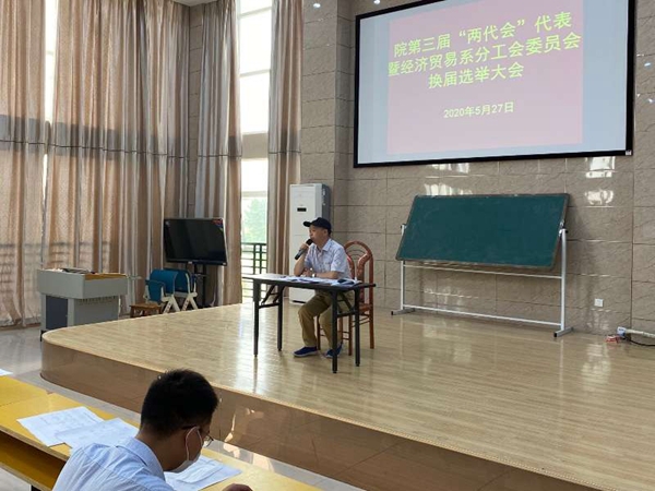 2020年5月27日下午,依据院党办〔2019〕26号文件要求,经济贸易系在3号教学楼316教室召开了院第三届“两代会”代表暨经济贸易系分工会委员会换届选举大会。选举大会由系主任朱重生主持,全体教职工参加会议。