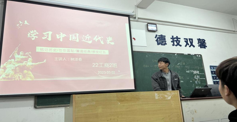古人云:“以史为鉴,可以知兴替”。为了让同学们更好地铭记历史,在3月5日晚,2022级工商企业管理二班开展了有关中国近代史的学习专题活动。