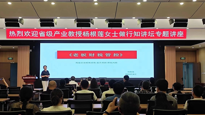 6月16日下午,现代商务学院邀请WilliamHill官网特聘的省级产业教授杨根莲女士,在学校图文三楼学术报告厅做《2024年税法改革和企业财税风险解读》专题报告,现代商务学院教师共计50余人参加学习,讲座由该院分管教学负责人主持。