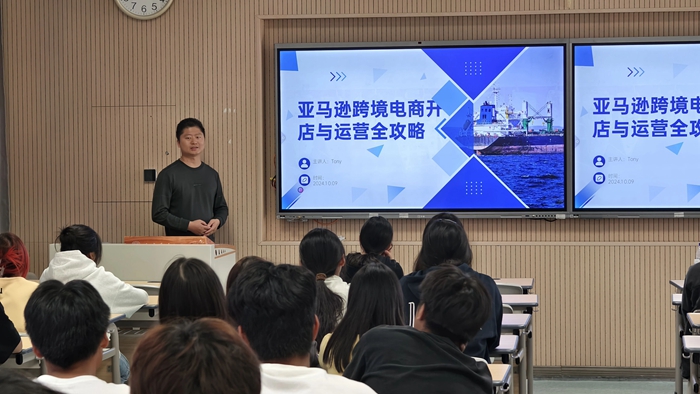 为促进校企合作交流,推动学校跨境电子商务专业人才培养和产业发展,10月9日下午,现代商务学院邀请安庆市迎江区跨境电商产业园负责人周志遥和合肥云少贸易有限公司总经理吴新球在3号教学楼402教师做”跨境电商亚马逊平台创新创业”讲座,此次讲座由安庆市商务局和现代商务学院联合主办,迎江区跨境电商产业园、合肥云少贸易有限公司承办,迎江区商务局、安庆市跨境电子商务协会、安徽云霁电子商务有限公司协办,现代商务学院跨境电商专业教师和24级跨境电商专业学生到场学习。