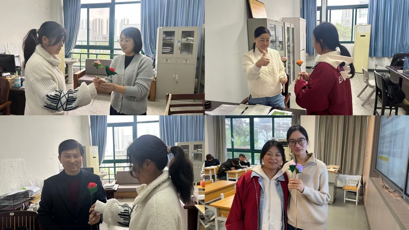 同学们走遍校园的各个角落,将亲手制作的象征感恩与敬意的玫瑰花,送到了授课恩师、校园保安、宿舍管理员和食堂工作人员手中,感谢他们日夜辛勤的付出,守护着校园的安宁与洁净。“收到同学们亲手做的玫瑰花,真的很惊喜、很温暖!”一位食堂阿姨拿着礼物,脸上洋溢着感动笑容。25级大数据与会计2班王子情同学说:“这次活动给我们提供了一个静下心来、用双手表达情感的宝贵机会。”