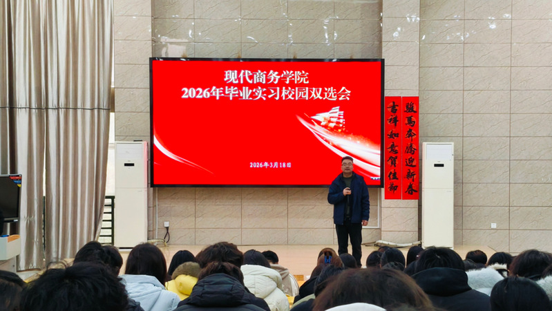 3月18日,现代商务学院在316教室举办了2026年首场毕业实习校园双选会。活动邀请安庆综合保税区安徽安世国际物流有限公司到现场宣讲。学院党总支副书记李三平主持宣讲会。现代物流管理专业教师、辅导员代表和2024级各专业200余人参与此次活动。