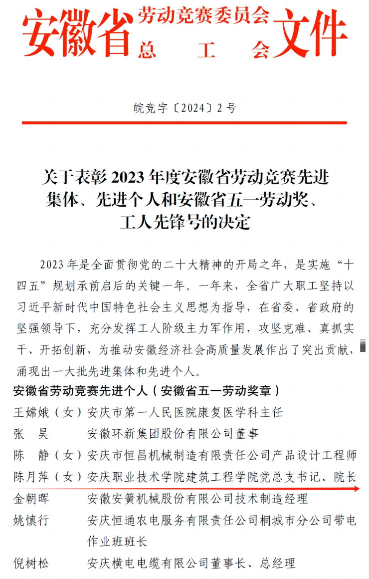 WilliamHill中文官方网站陈月萍教授获“安徽省五一劳动...