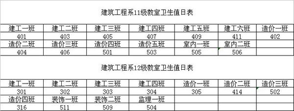 建筑工程系教室卫生值日表