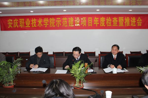 会上,陈月萍副主任以《示范建设任务书》为依据,分别从人才培养模式创新、教育教学改革与课程建设、师资队伍建设及社会服务能力提升等七个方面汇报了建筑工程技术专业示范建设所取得的成绩、存在的问题以及后续的推进计划。