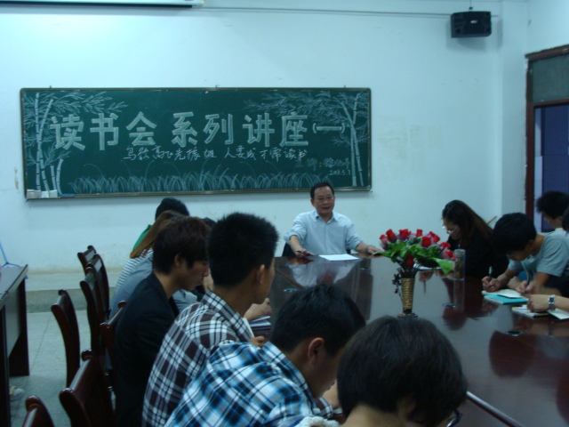 乘着我院“书香校园”的春风,我系继成立我院第一个读书会之后,又迎来了读书会系列讲座活动。2013年5月7日晚,由我系党总支书记徐北平老师主讲的《鸟欲高飞先振翅、人求上进需读书》为我系读书会系列讲座活动拉开了序幕。读书会全体成员和部分教师参加了活动。