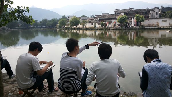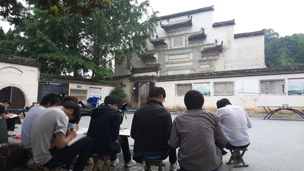 实习期间,同学们用心观察、认真学习,努力提高专业水平的同时,对徽州古建筑进行测绘、复原。大到柱网构造,小到每处木雕,都被一一记录下�。实习中后期,安排当地风水老师给同学安排系列讲座,讲解当地建筑风水、徽州室内装饰。同学们对速写以及构图逐渐增加了自己的理解,绘画的熟练程度也得到了明显提高,画作的质量以及数量逐步有了质的飞跃。同学们的进步有目共睹,对专业的兴趣和信心也有了极大地提升。在老师们把自己的实践经验和课堂理论知识结合在一起,因材施教地给学生指导,不仅为同学们提供一个走出教室、亲近大自然、激发专业学习热情、提高专业水平的机会,而且提升了学生的美术素养,开拓了学生的专业眼界。
